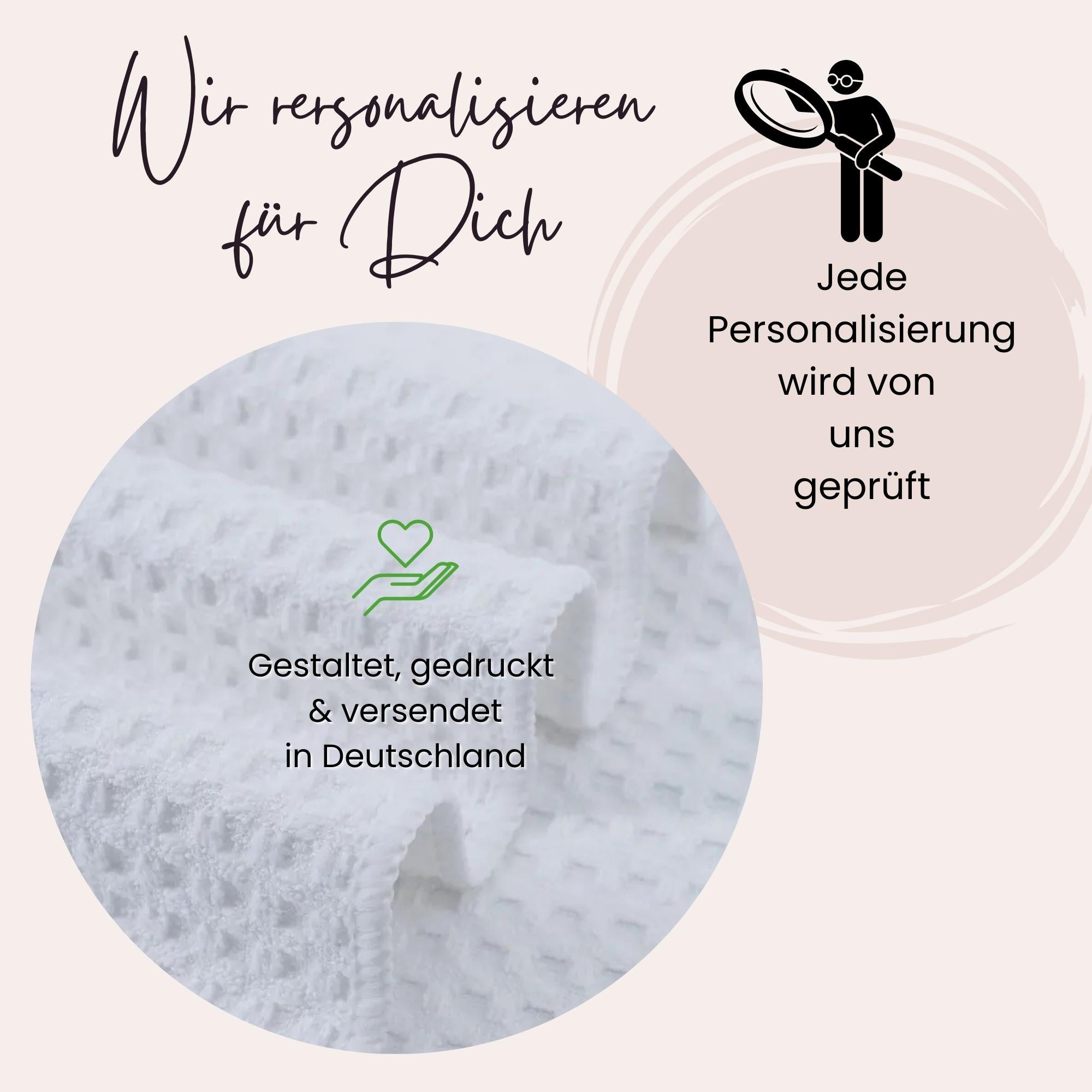 Wir möchten, dass dein Produkt perfekt ist. Solltest du versehentlich einen Fehler bei der Personalisierung gemacht haben, gewähren wir dir einen einmaligen, kostenlosen Ersatz.