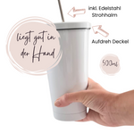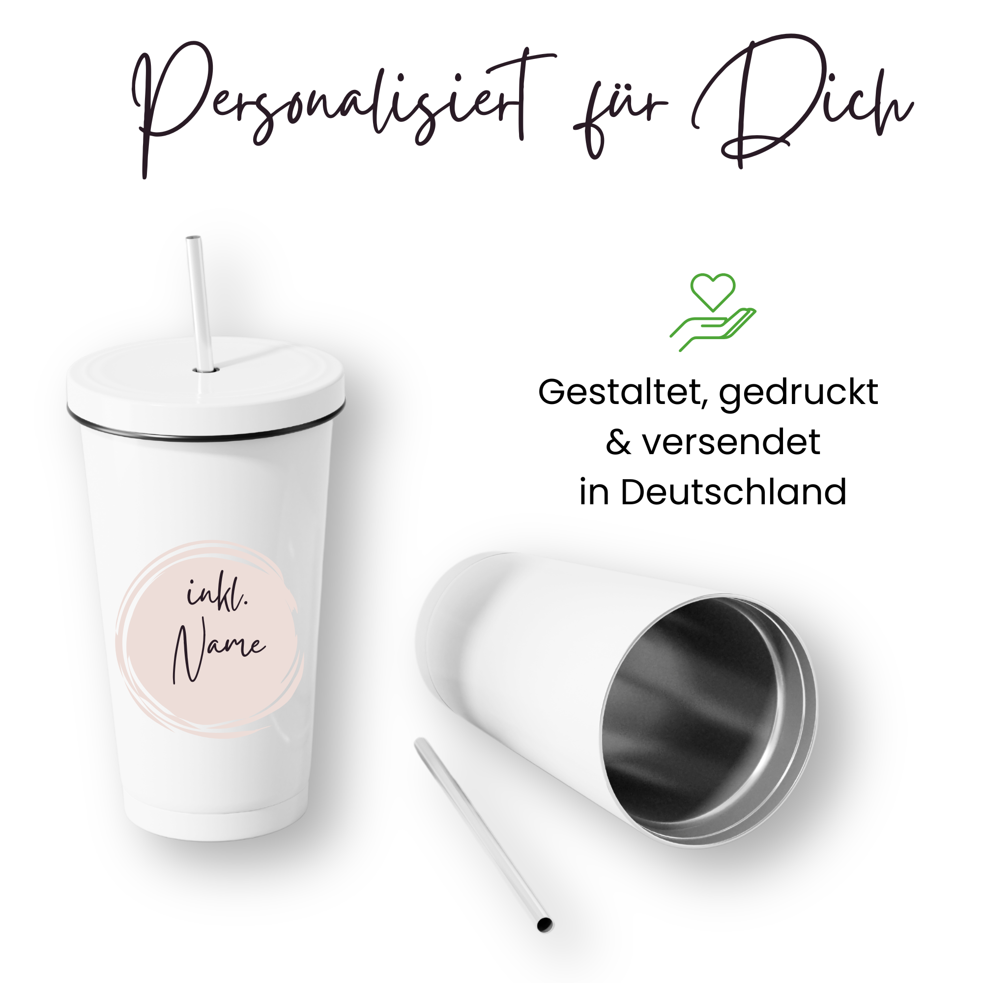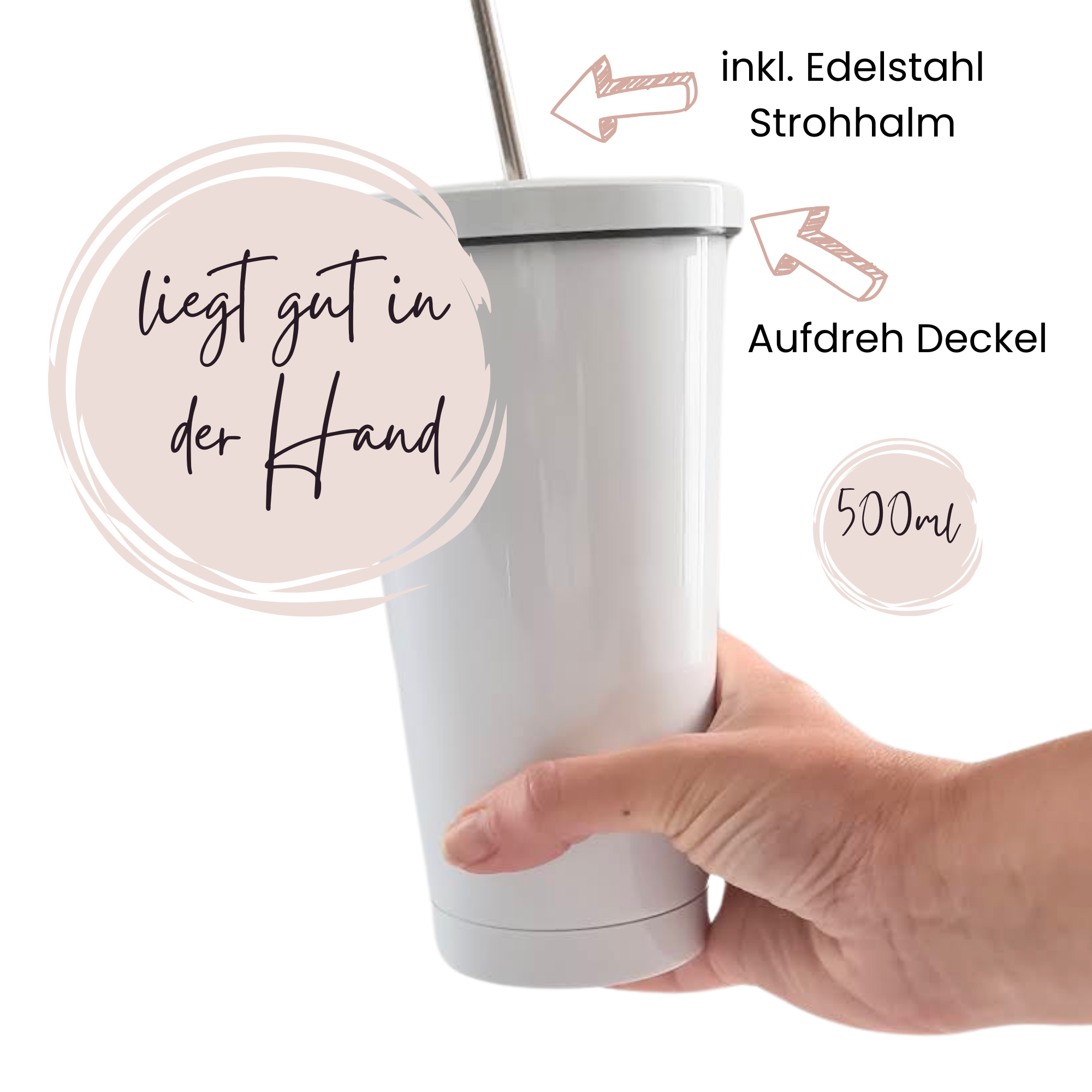 Der Trinkbecher mit Deckel und Strohhalm ist nicht nur praktisch, sondern auch ein echter Blickfang! Die zarten Blumenmuster verleihen jedem Schluck einen Hauch von Eleganz.