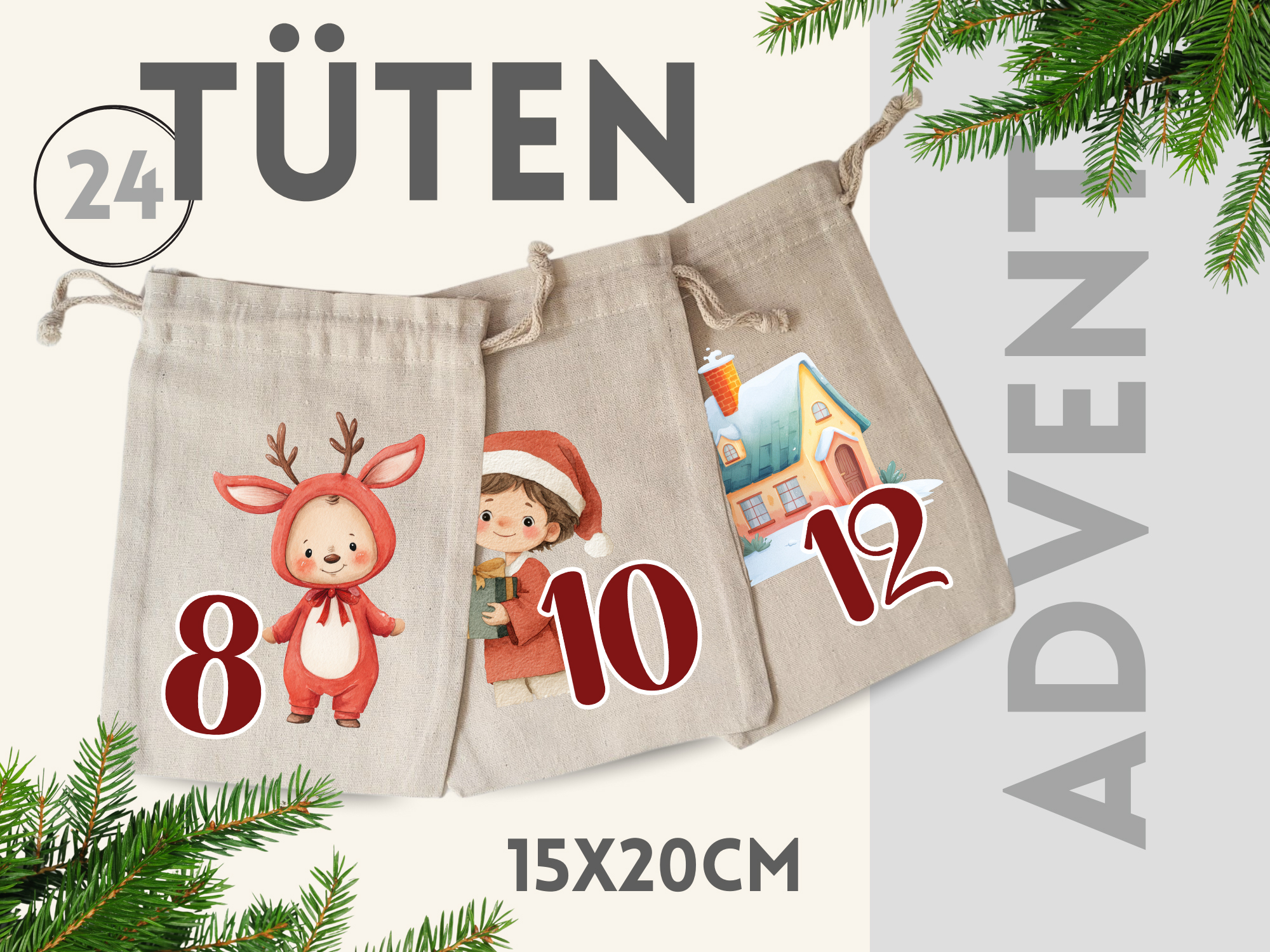 24-teiliger Adventskalender zum Befüllen – wähle zwischen Bügelbildern oder fertigen Beuteln