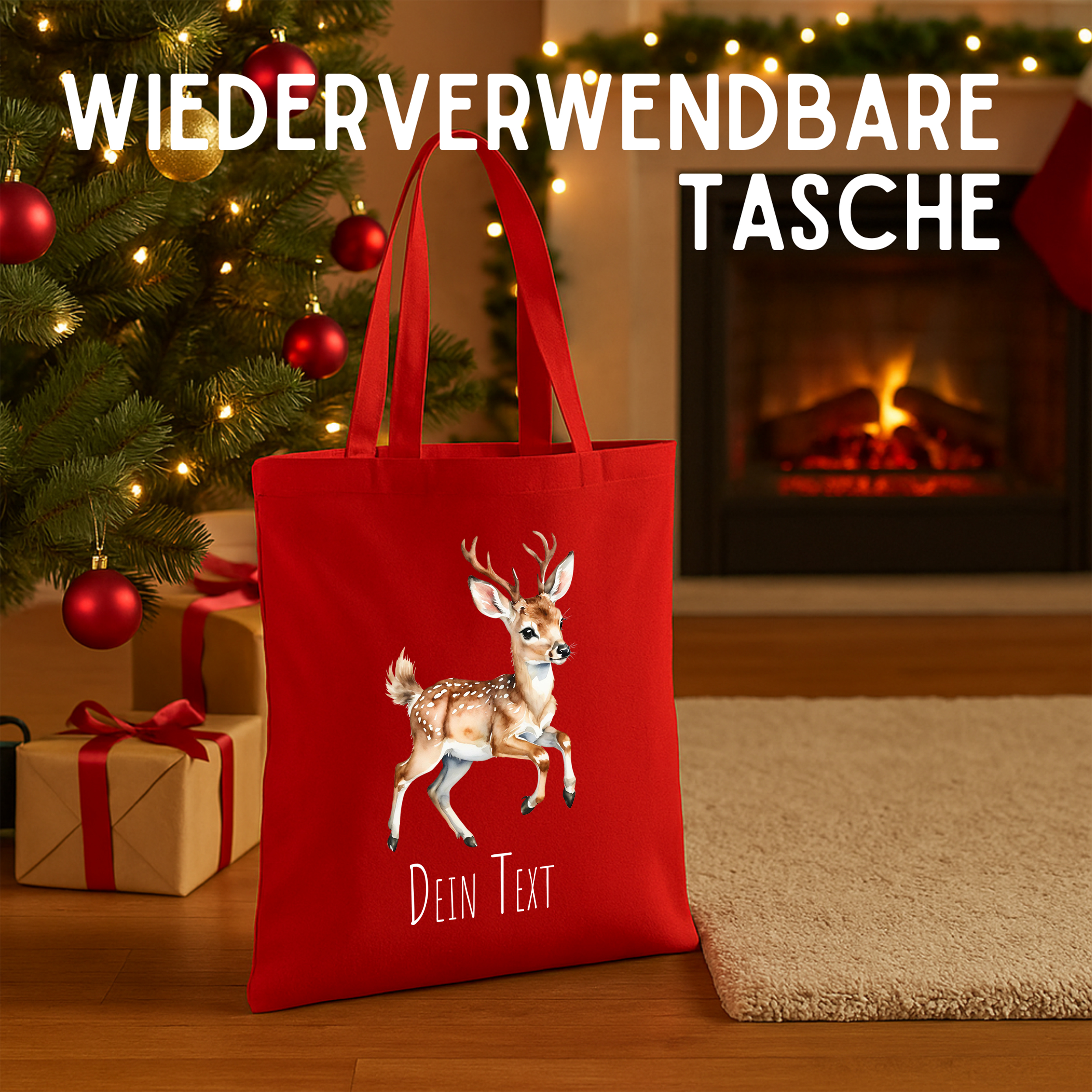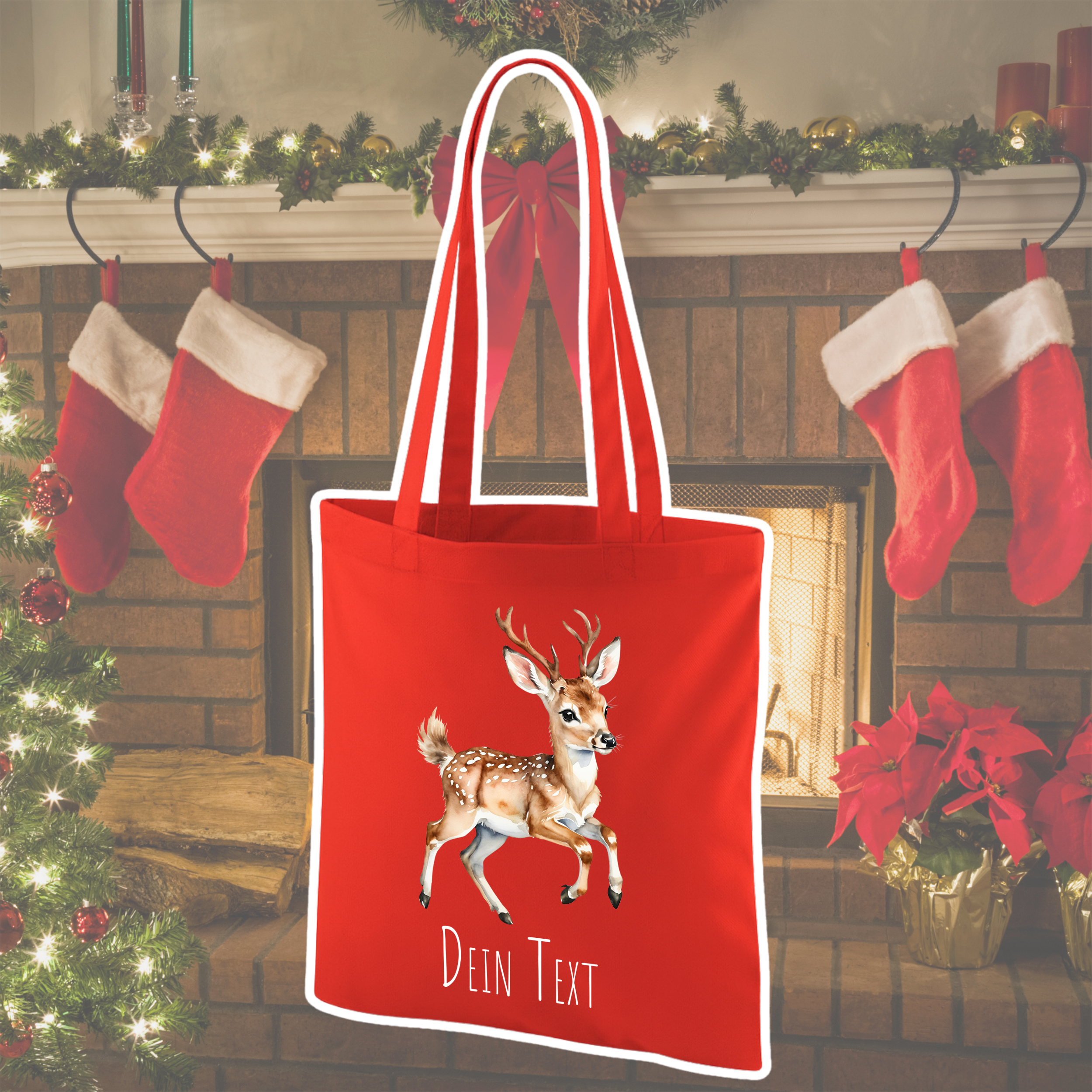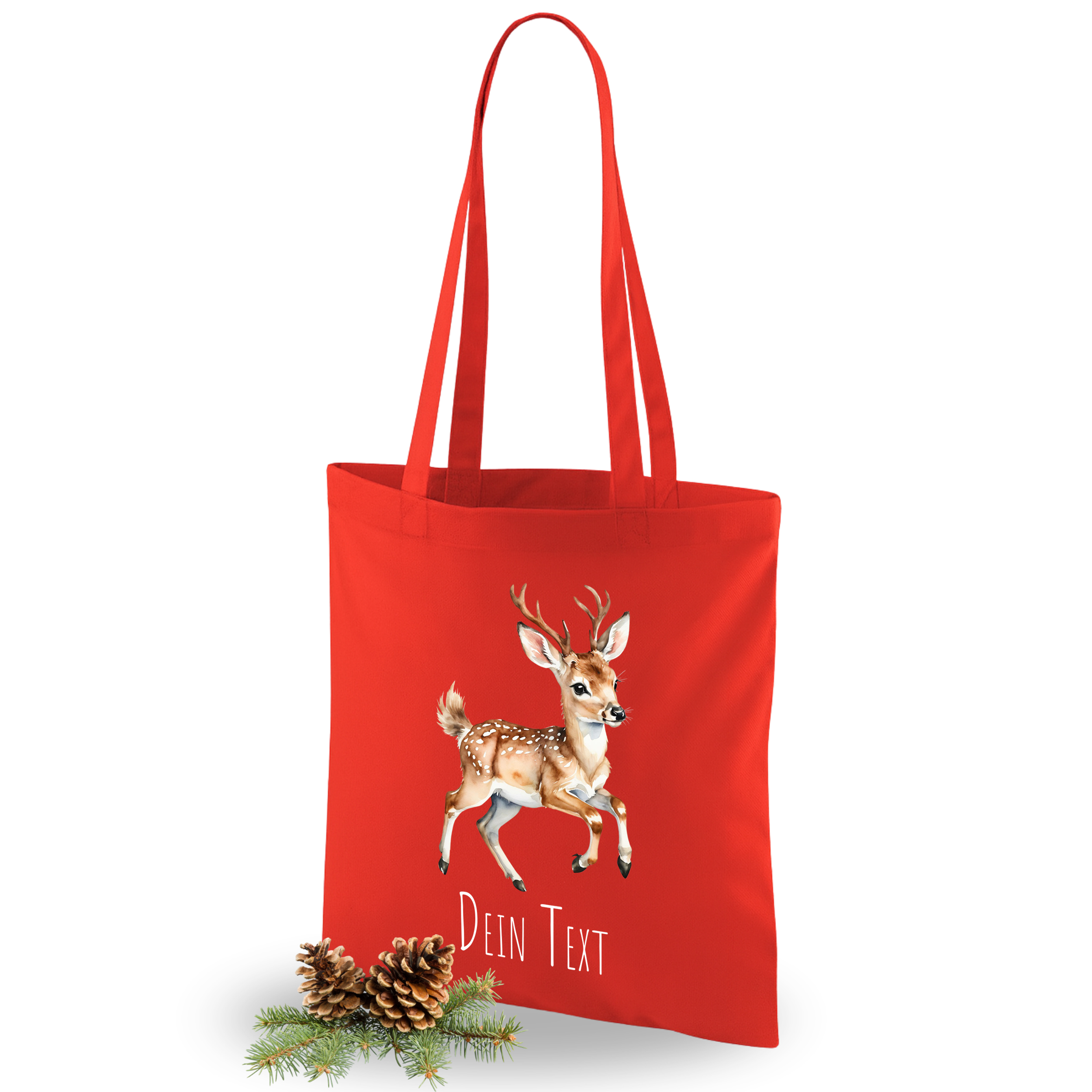 Weihnachtseinkaufstasche Rot mit Reh-Motiv