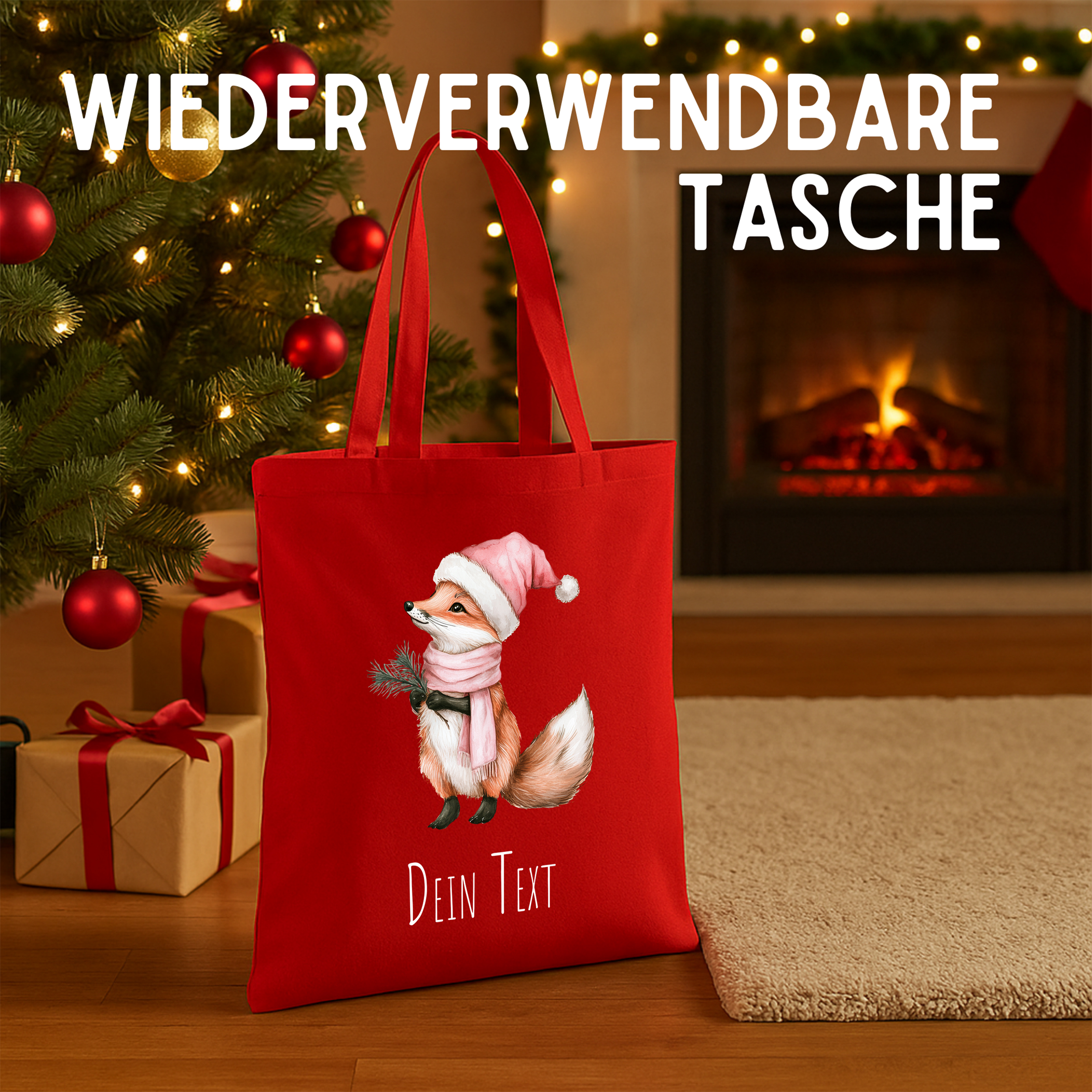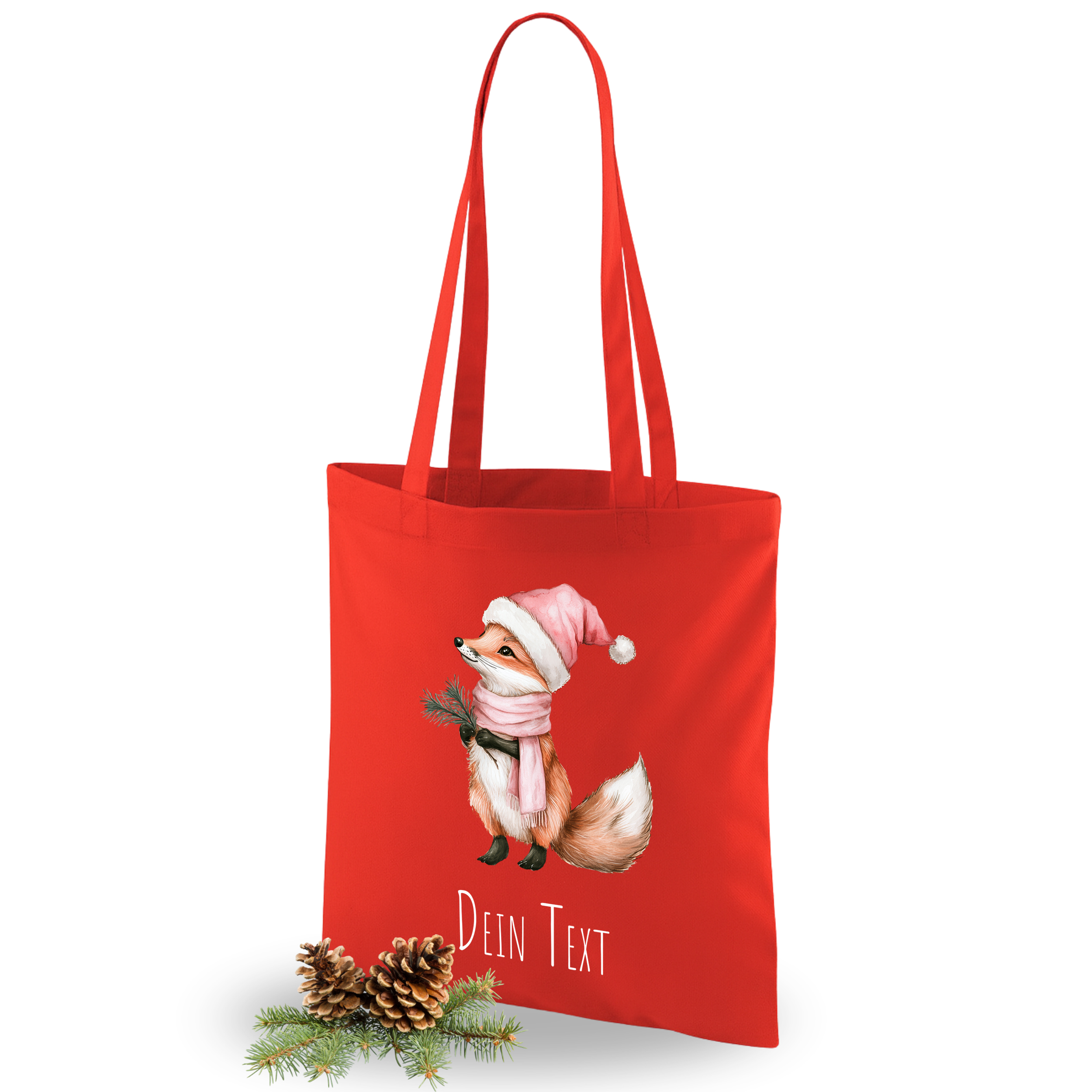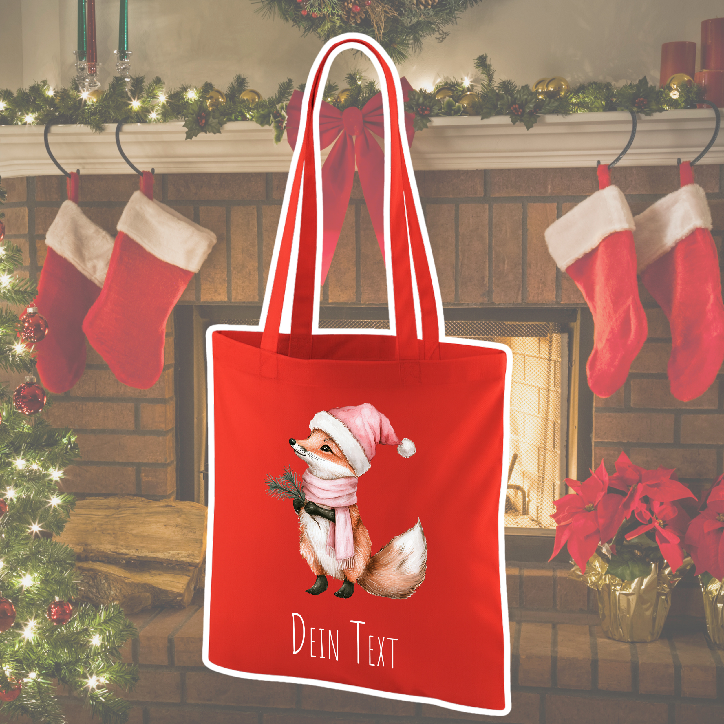 Weihnachtseinkaufstasche Rot mit Fuchs-Motiv