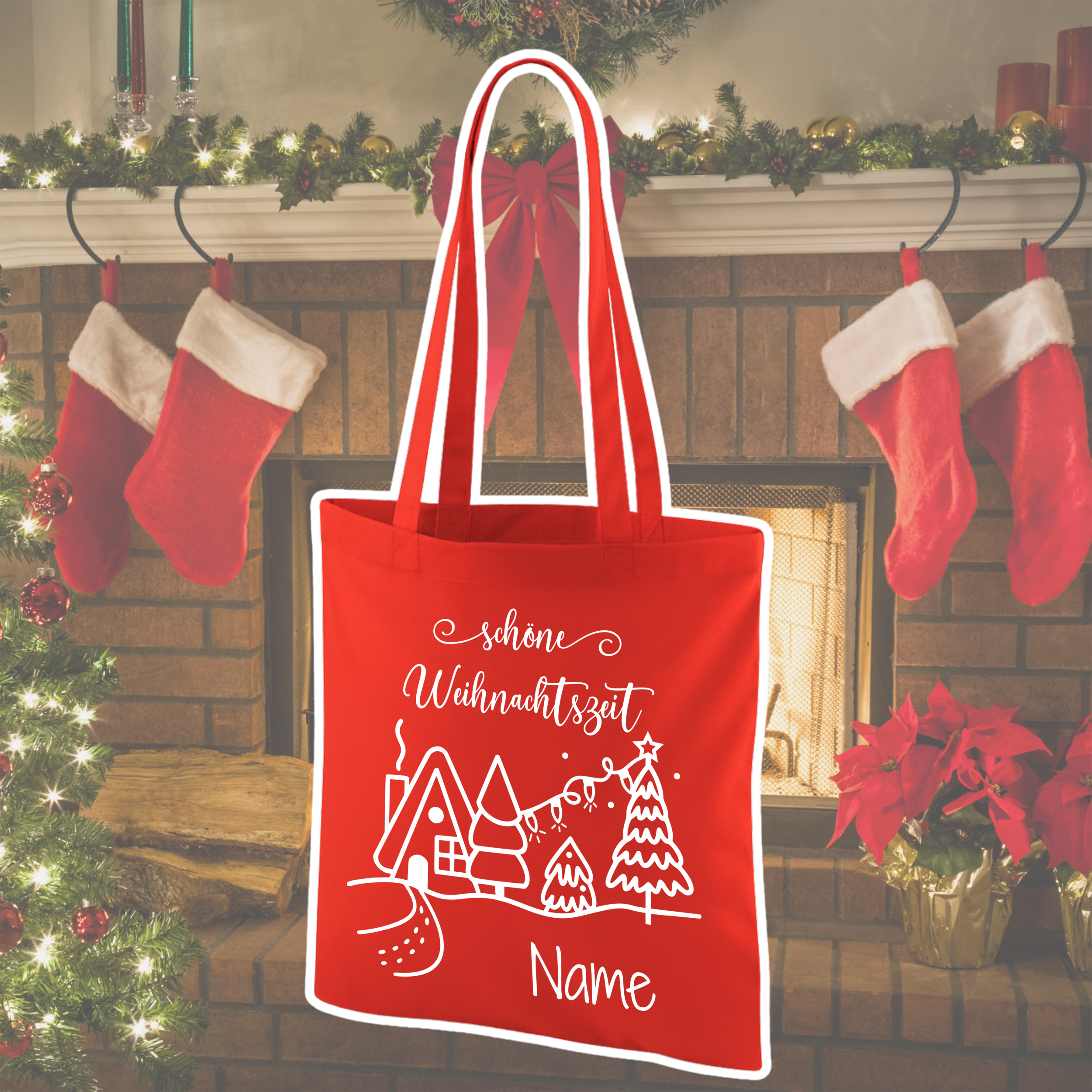 Weihnachtseinkaufstasche Rot mit Frohe Weihnachten