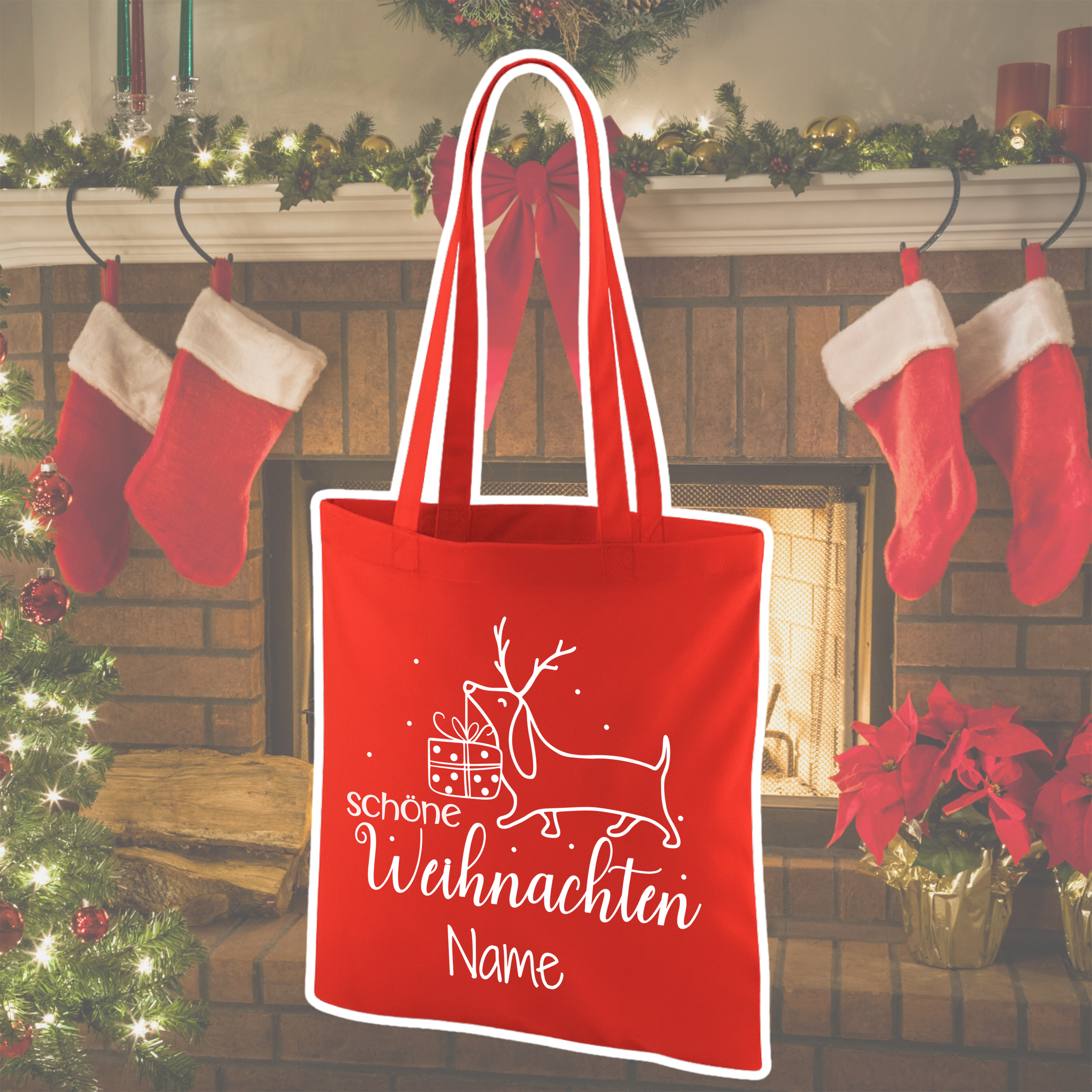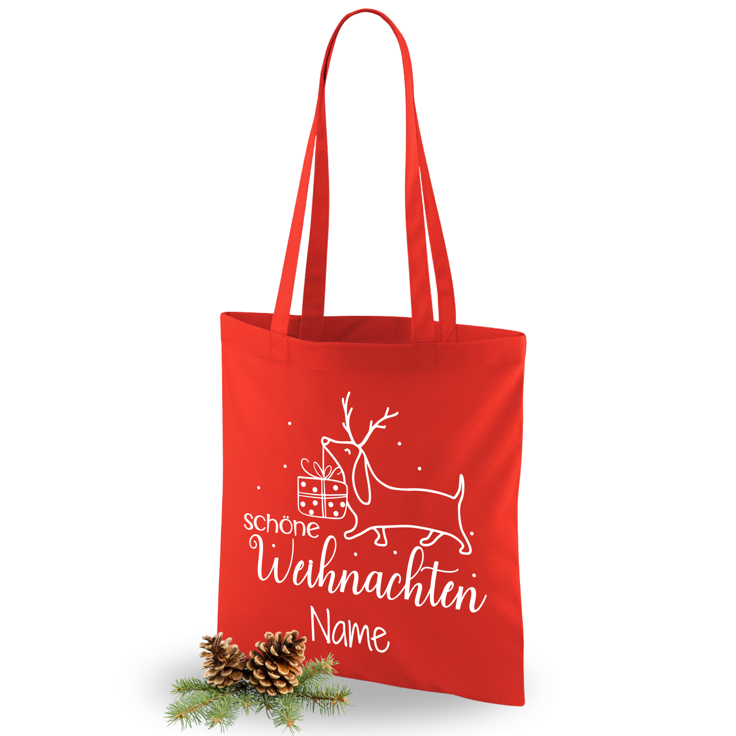 Rote Weihnachtstasche mit süßem Hundemotiv