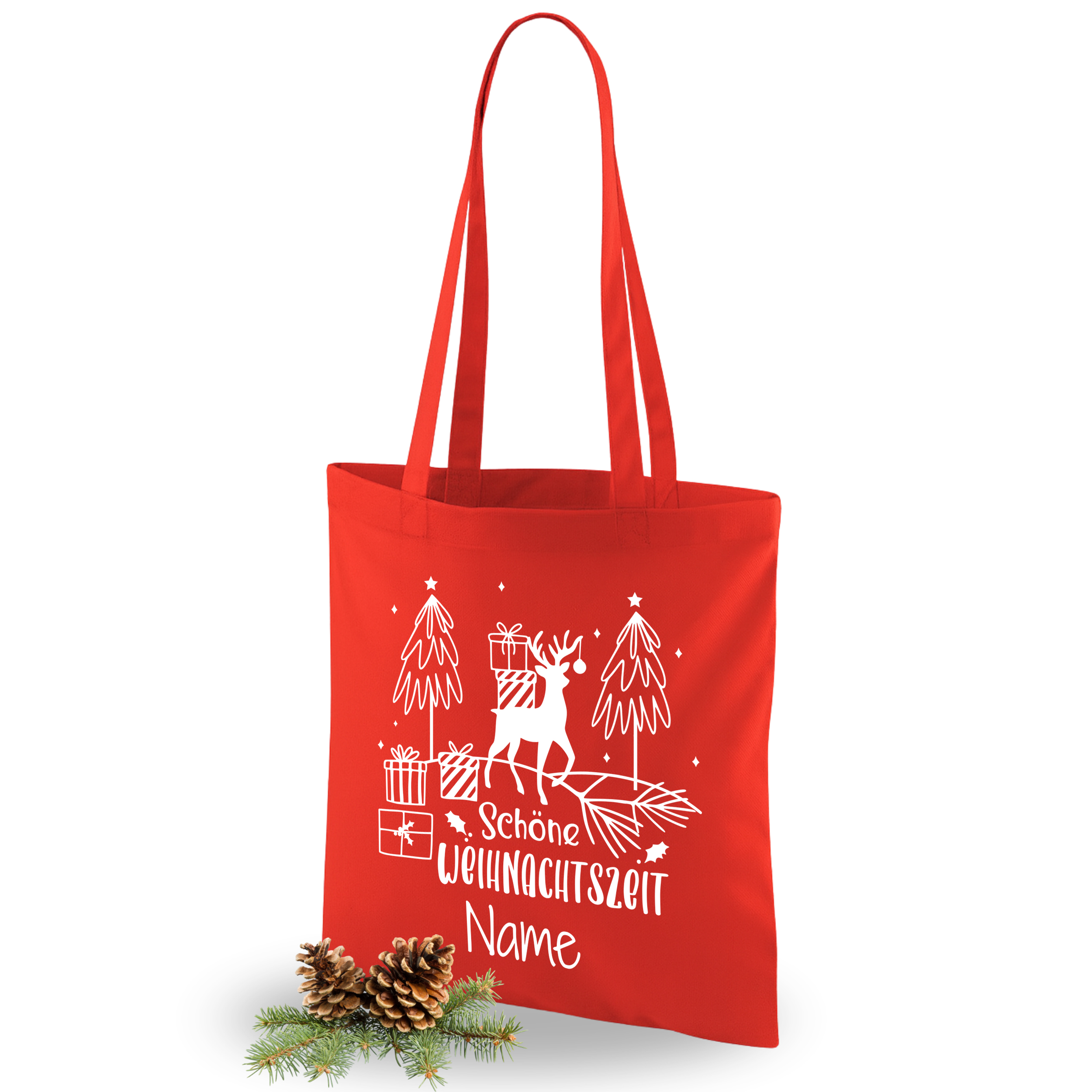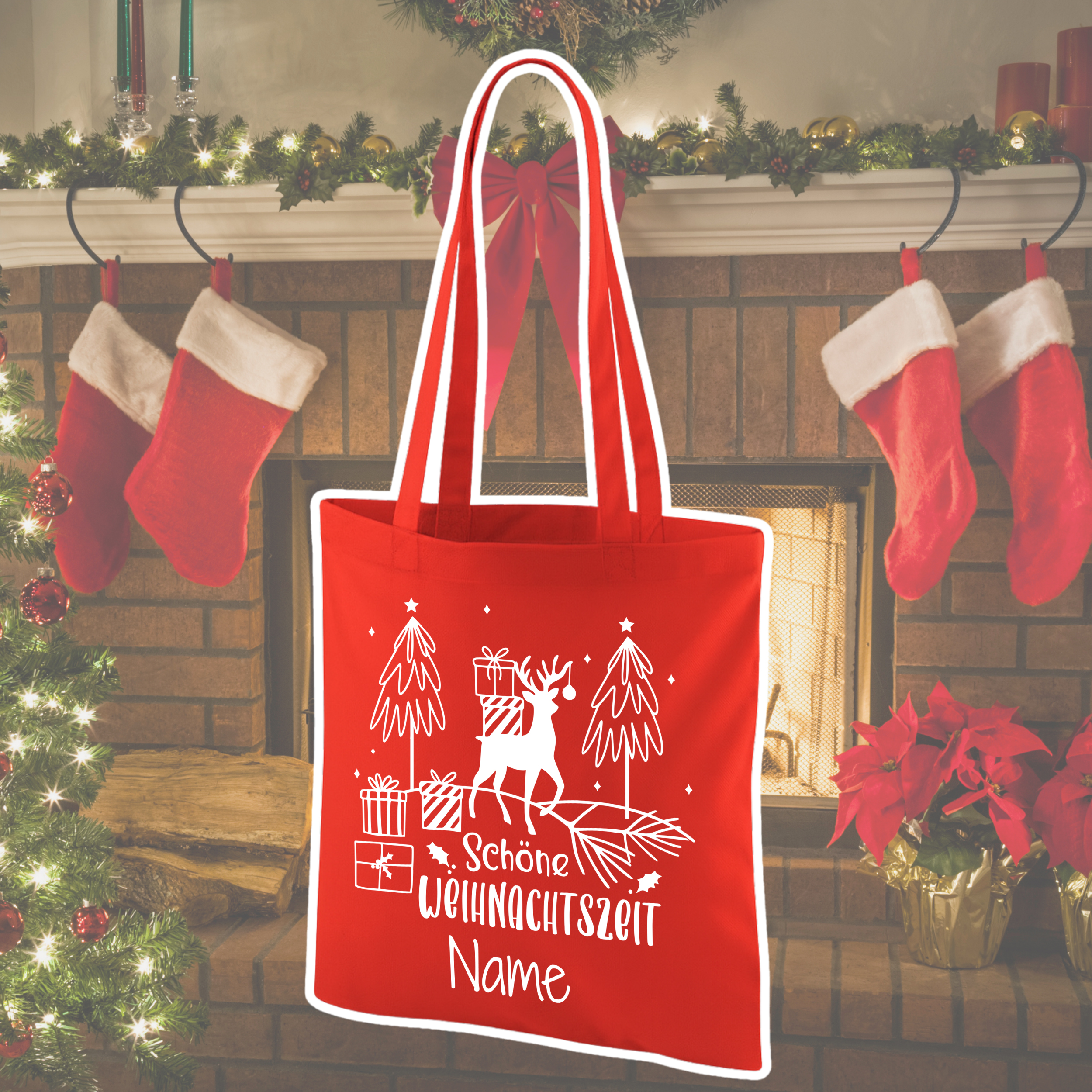 Diese rote Weihnachtseinkaufstasche mit festlichem „Frohe Weihnachten“ Schriftzug ist die perfekte Verpackung für Geschenke.