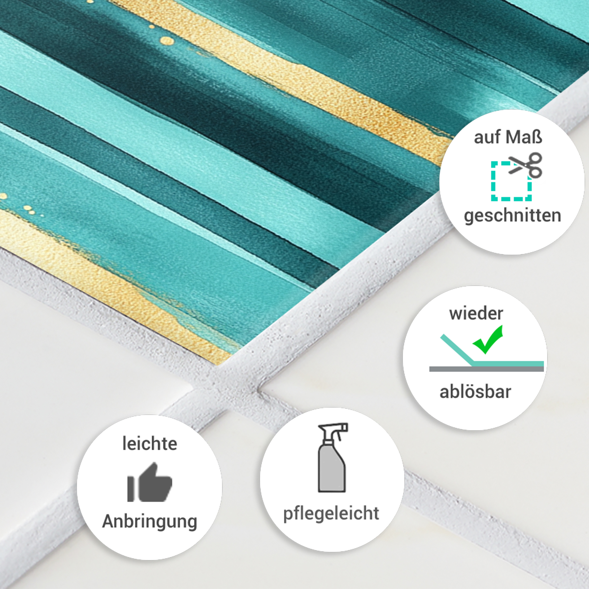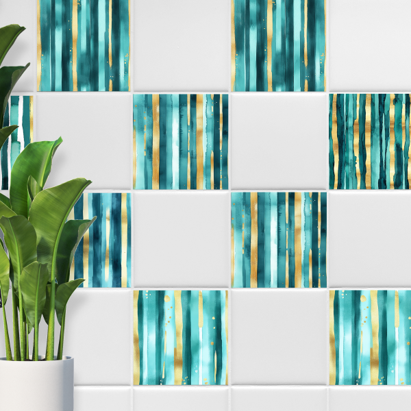 Fliesenaufkleber Türkis-Blau-Gold Streifen