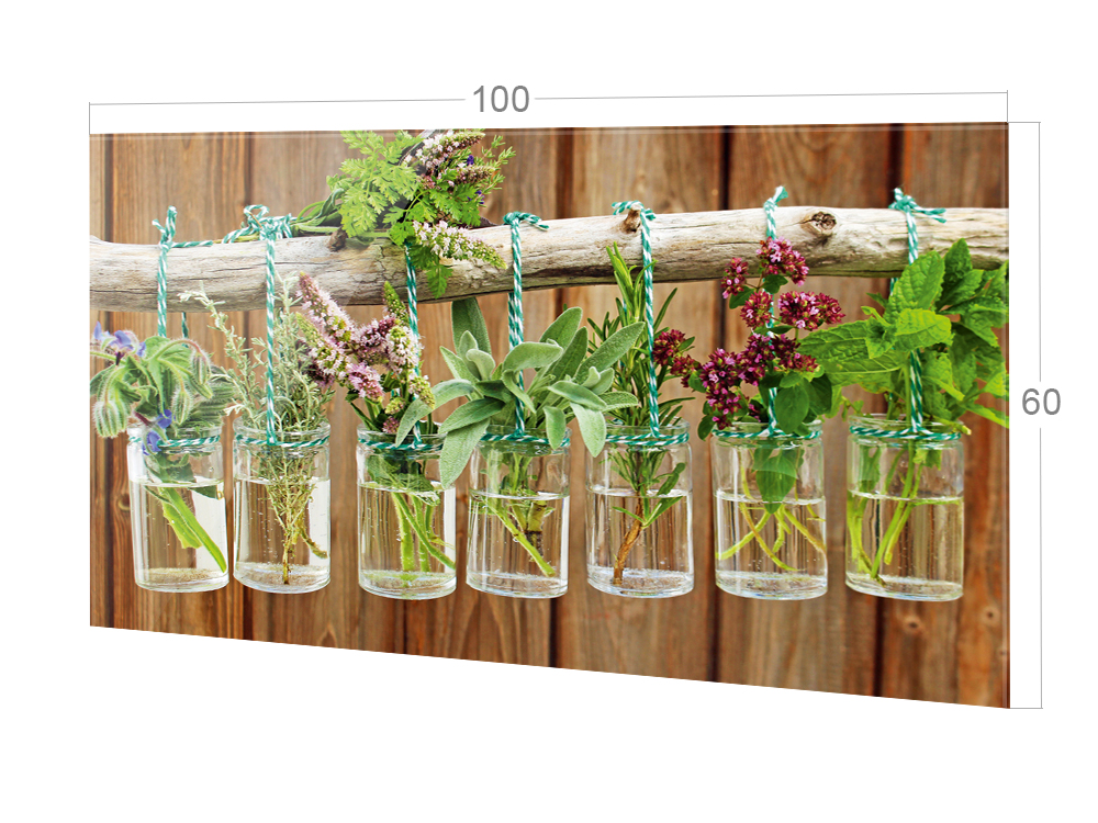 Spritzschutz Küche Glas Frische Kräuter Braun Holz Optik