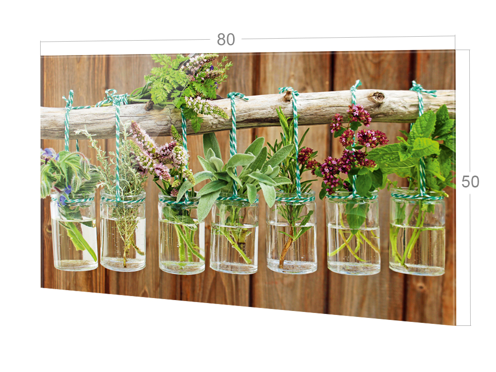 Spritzschutz Küche Glas Frische Kräuter Braun Holz Optik