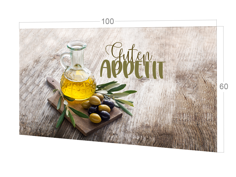 Spritzschutz Küche Glas Guten Appetit mit Olivenzweig braun