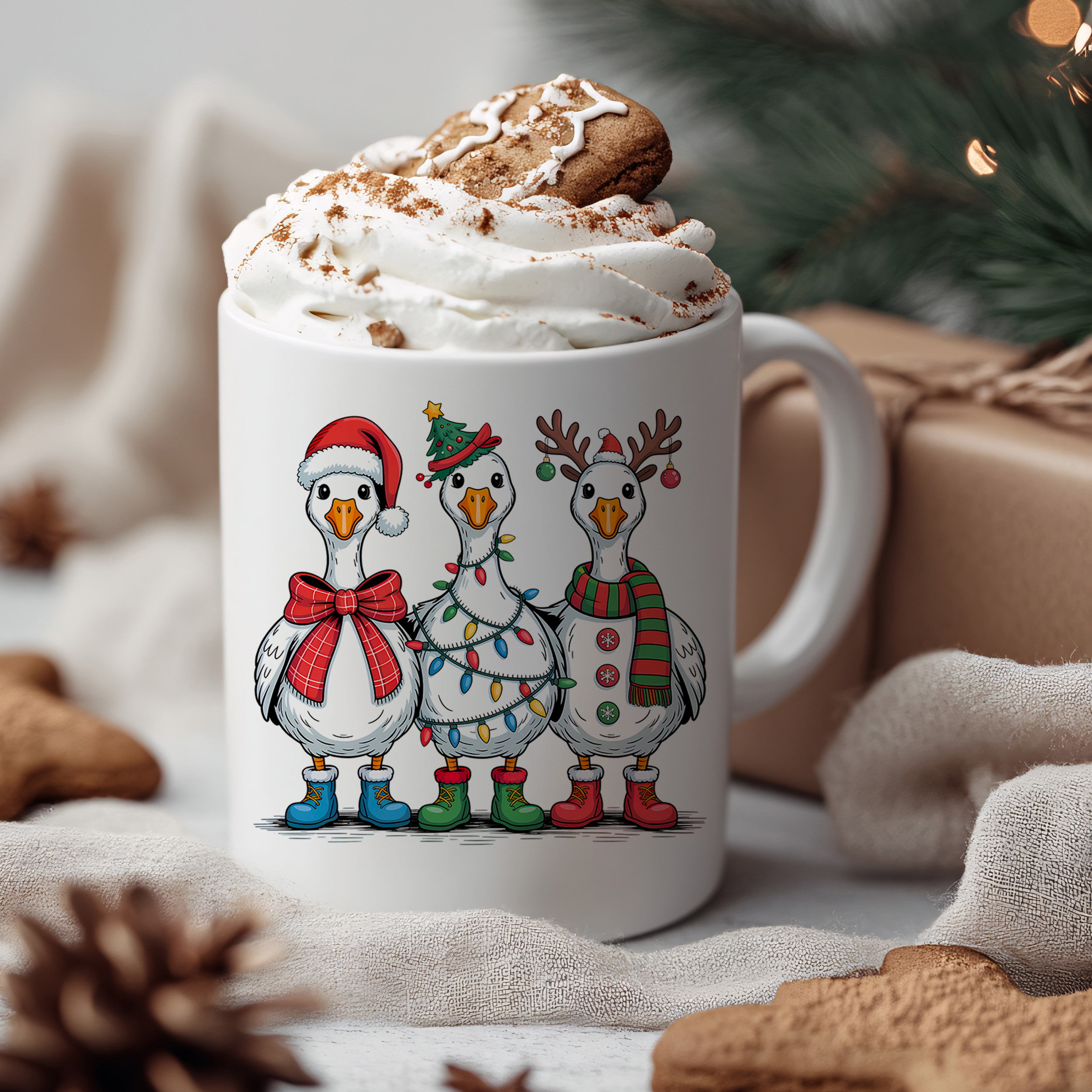 Süße Weihnachtstasse mit Enten-Motiv