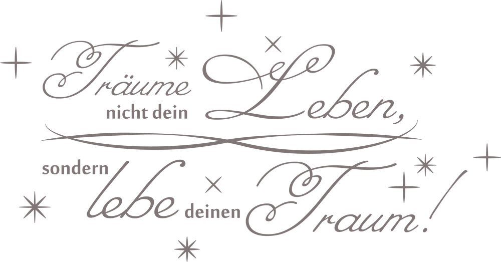 Wenn Du nach einem Wandtattoo für Dein Schlafzimmer suchst, was nicht nur gut aussieht, sondern auch eine tolle Botschaft vermittelt, haben wir mit diesem schönen Spruch genau das Richtige für Dich. Der inspirierende Spruch "Träume nicht Dein Leben, sondern lebe Deinen Traum" erinnert Dich jeden Morgen daran, dass Du Deine Ziele verfolgen solltest, und gibt Dir die perfekte Motivation für den Tag. Durch seine geschwungene Schrift und die einzelnen Sterne wird das Wandtattoo für Dein Schlafzimmer optisch optimal abgerundet und wird an Deiner Wand zu einem echten Blickfang.